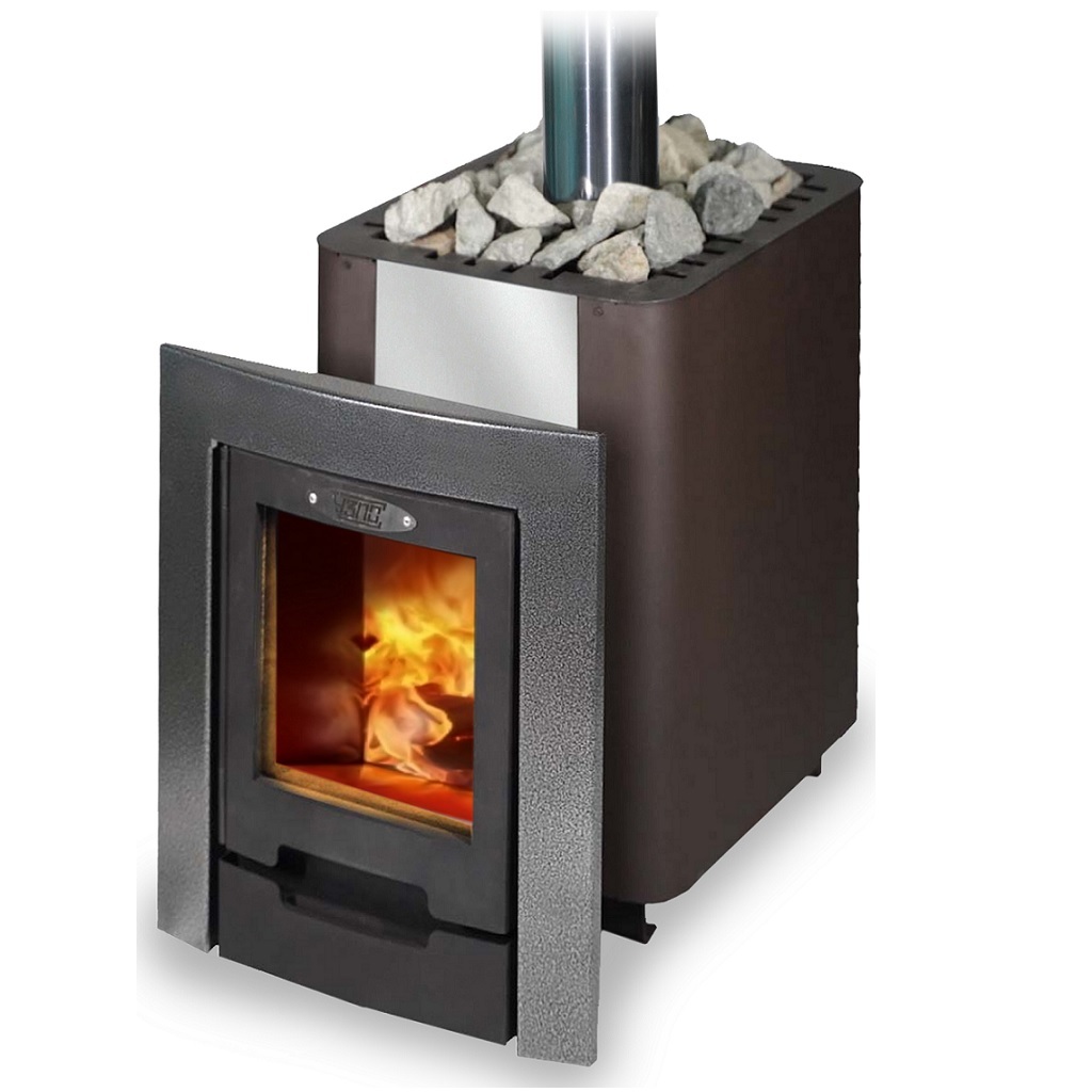 Банная печь оснащена стальной дверкой со стеклом, благодаря которому можно наслаждаться горением дров из комнаты отдыха.