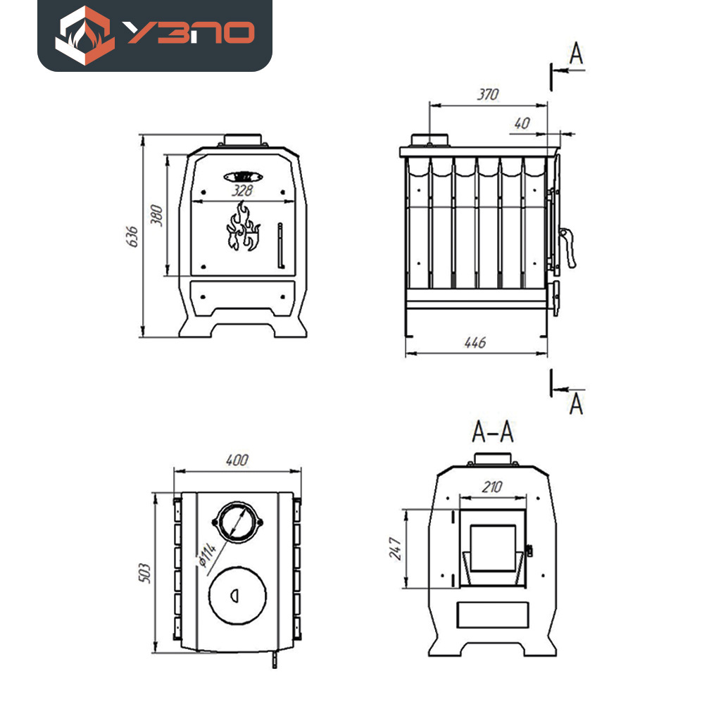 Диаметр дымохода, мм: 115