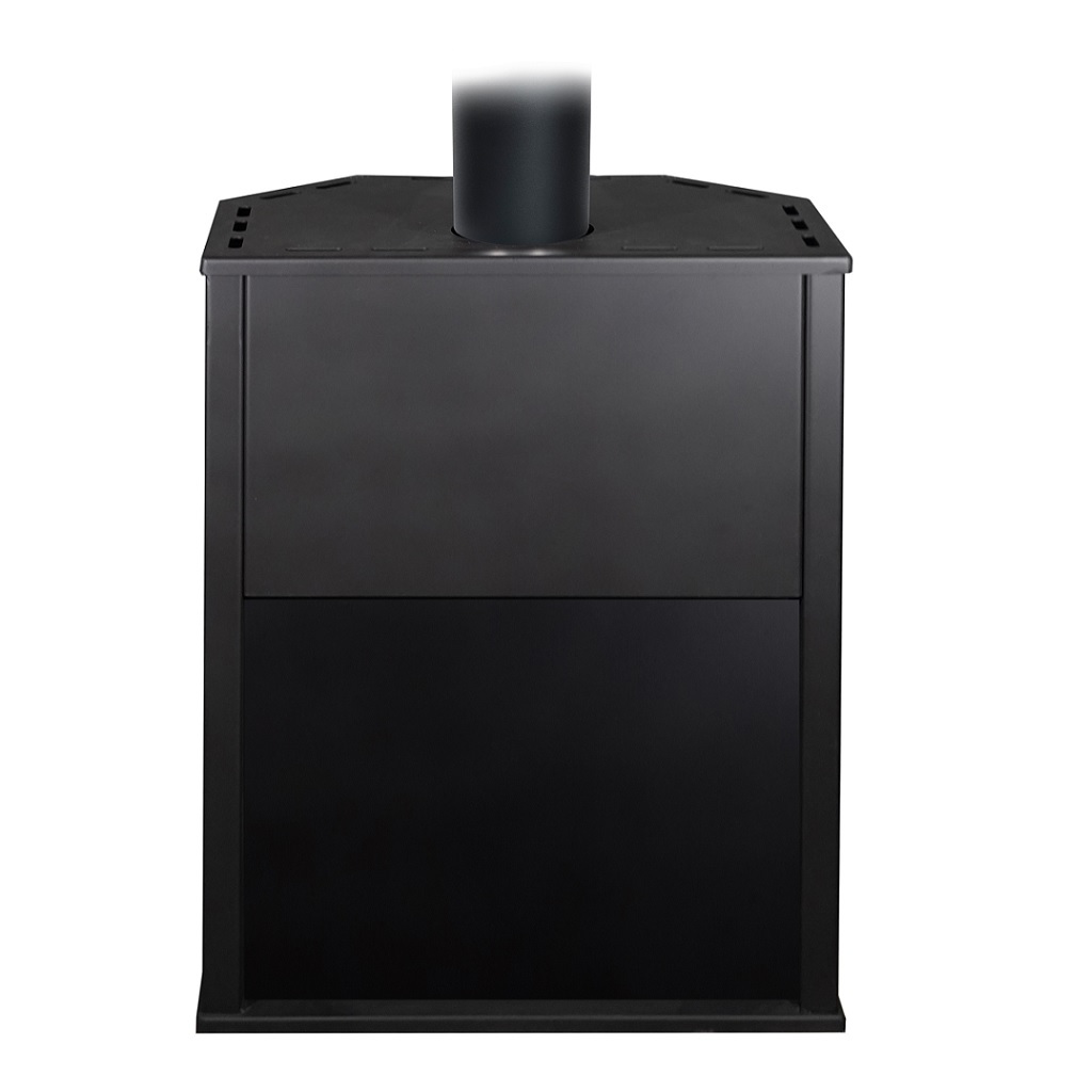 Верхний выход дымохода делает монтаж печи более легким и доступным, печь снабжена чугунным колосником. Для уплотнения разъемных элементов используется термостойкий шнур.