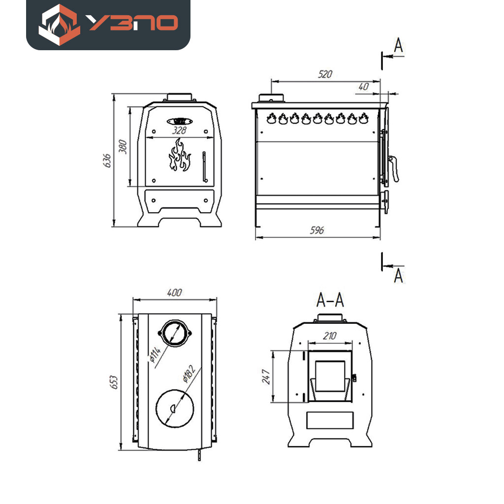 Продолжительный срок службы, достигается благодаря увеличенной толщине свода топки до 4 мм. Проём дверцы топки (210 мм х 247 мм) позволяет удобно наполнять печь дровами. Рекомендуемая длина дров 55 см. За счет конвекционного кожуха, печь «Теплушка 200» не только быстро прогреет помещение, но и защитит от жесткого инфракрасного излучения. Печь имеет широкую, плоскую верхнюю плиту со съемной конфоркой, позволяющую не только готовить или разогревать пищу, но и прочищать от сажи верхнюю часть печи.